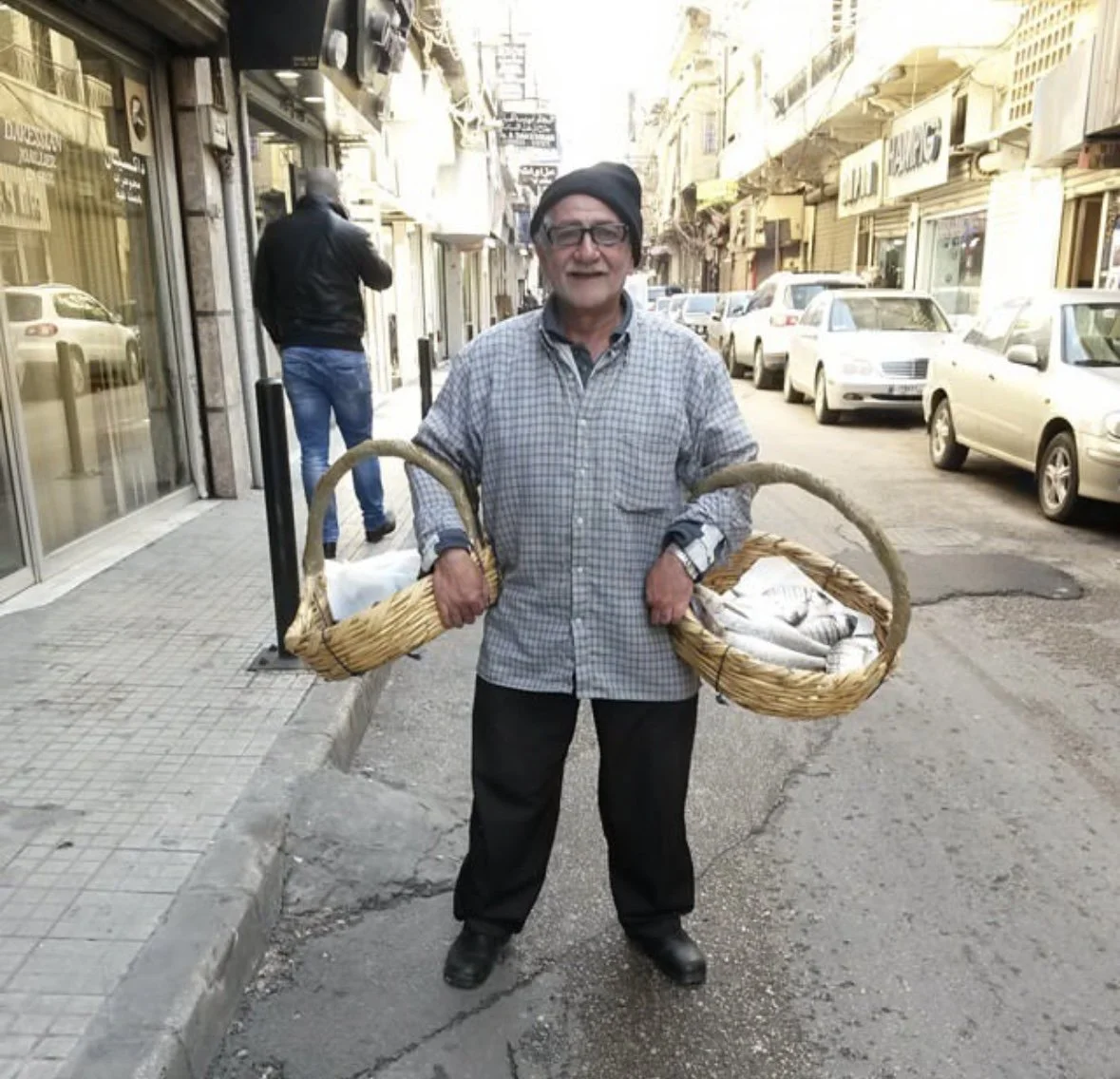 Fish monger selling his catch from baskets - Image by Karim Sakr