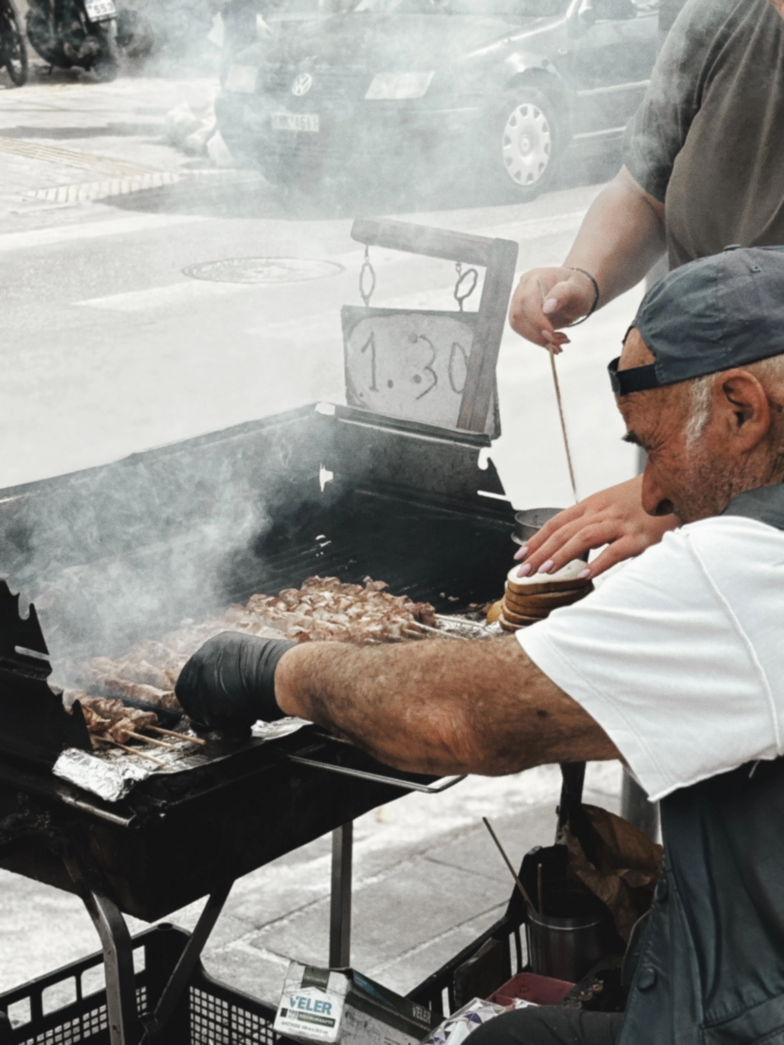 Farmers Markets emerge from innovation and tradition. These markets in Chania (pictured) have been running since 1913, way before supermarkets. The stall holders roll down from the white mountains with their stunning produce - cheeses, honey and snails - but the vendor that captured our hearts the most was the smokey souvlaki stall. Hunched over a tiny charcoal bbq, this Cretan was cooking his meat sticks and toasting white bread on a Saturday morning by the side of the road, calling out to his daughter to bring more meat from the eski in the back of their beaten up car. Real Cretan style.